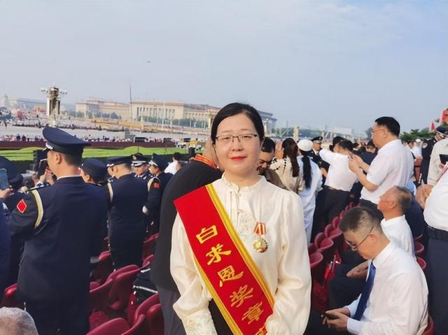 观礼嘉宾席上,中南大学湘雅医院重症医学科主任张丽娜教授身戴白求恩奖章,正襟危坐,难掩激动。9月3日的北京艳阳高照,但她专注地望着受阅方队和抗战老兵方阵,生怕错过每一个精彩瞬间。受阅方队迈着整齐的步伐走过,张丽娜忍不住站起身,用力鼓掌,看到年近百岁的老兵依旧脊背挺直、敬礼有力,张丽娜的眼眶瞬间湿润了。